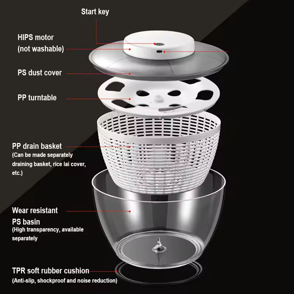 Vegetable Dehydrator Electric Quick Cleaning Dryer Fruit and Vegetable Dry and Wet Separation Draining Salad Spinner Home Gadget