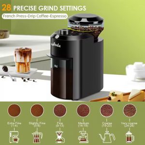 Wancle Electric Burr Coffee Grinder Adjustable Burr Mill Conical Coffee Bean Grinding with 28 Precise Grind Setting 220V/120V