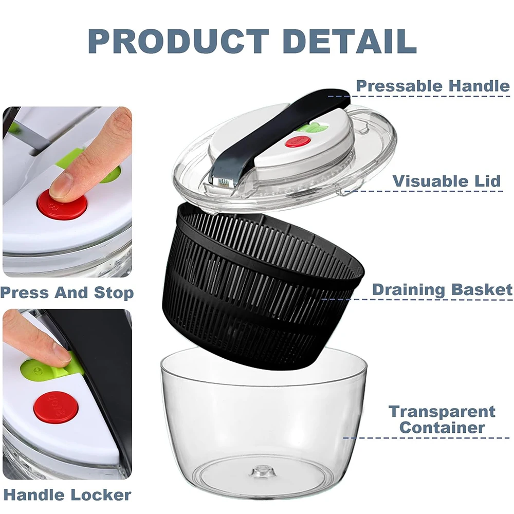 Crafted with ABS blade material, this salad spinner is not only durable but also eco-friendly, ensuring a sustainable kitchen experience.