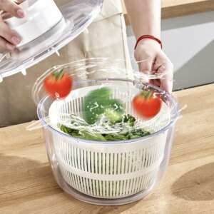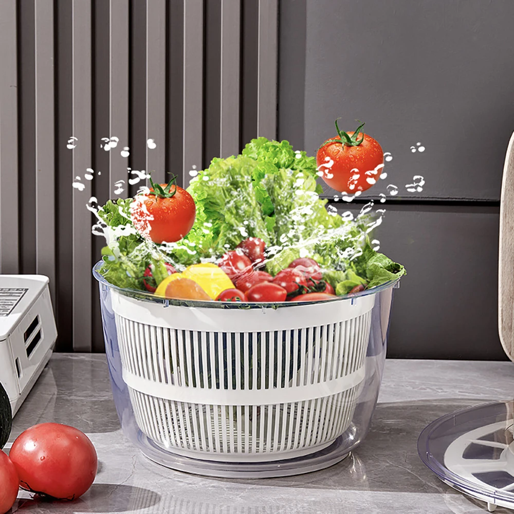 3L Salad Spinner Large Salad Sowl With Lid One-handed Easy Press Salad Spinner Washer Dryer Drainer Mixer