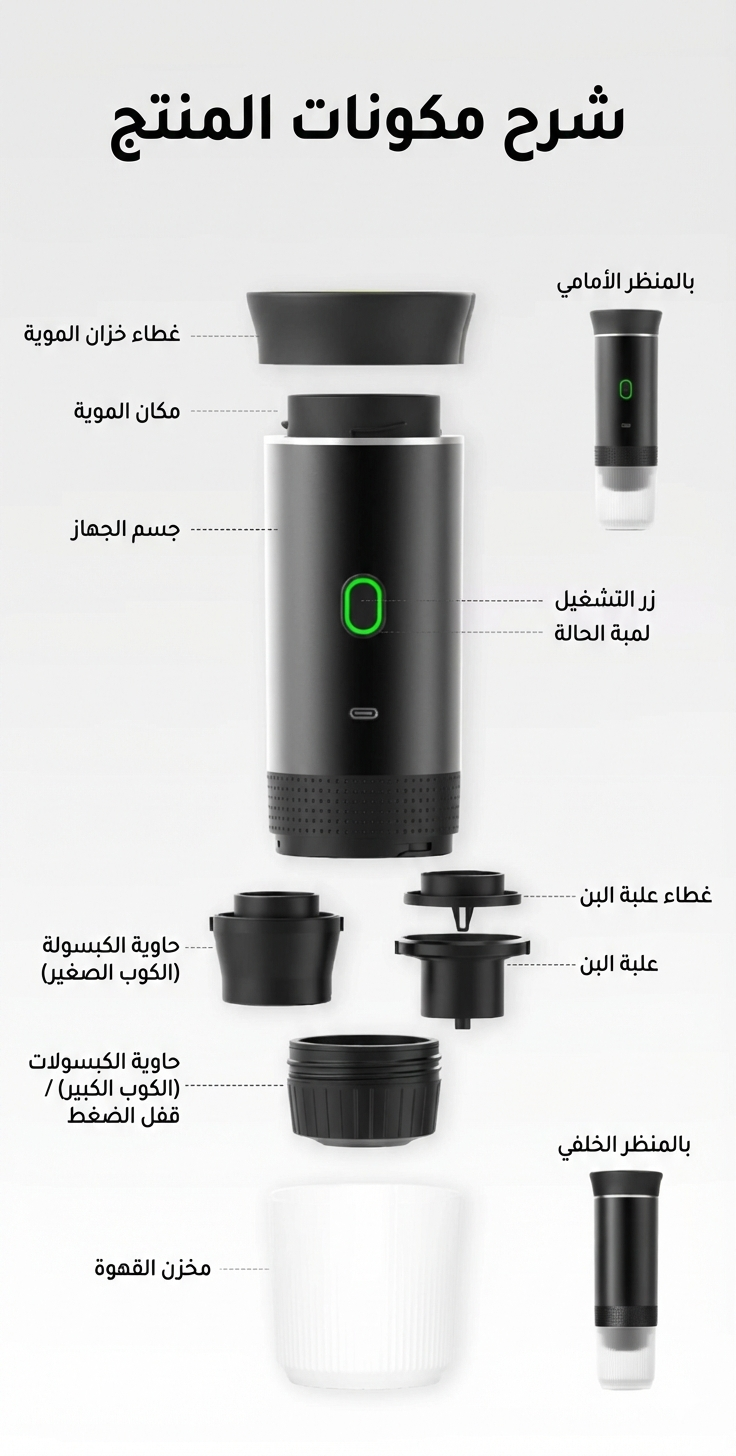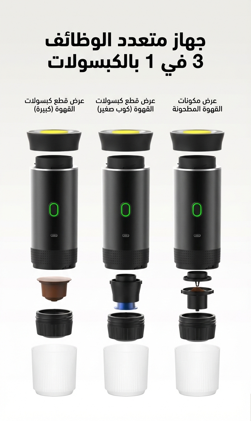 ماكينة شاومي (Xiaomi Youpin) المتنقلة هي الحل المثالي لكل عاشق للقهوة يبحث عن “الكيف” والراحة. لا تشيل هم الأسلاك ولا حرارة الموية، الماكينة تسوي لك كل شيء بضغطة زر!